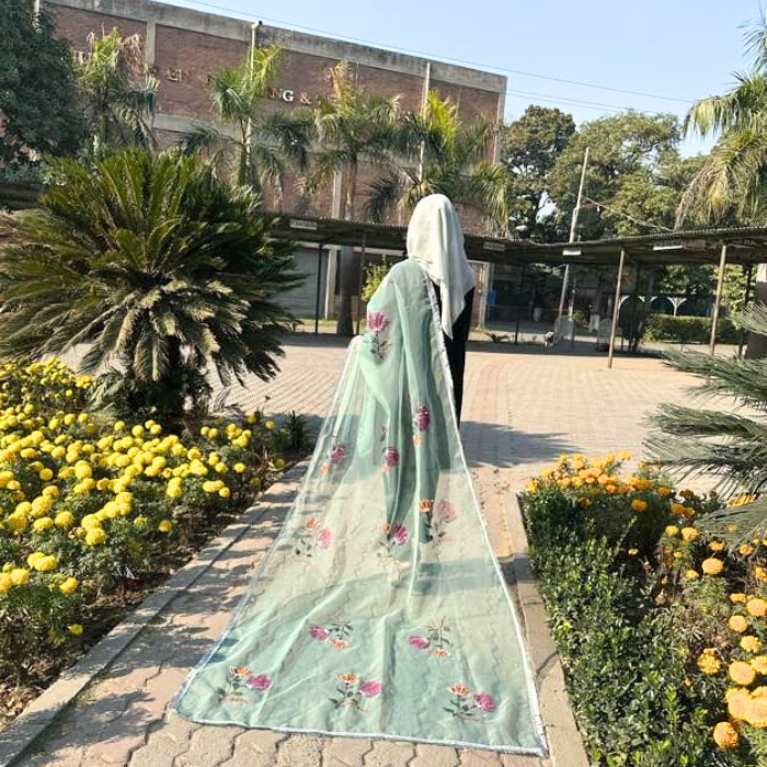 Hand Paint Organza Dupatta – Pale Turquoise Green Shade
