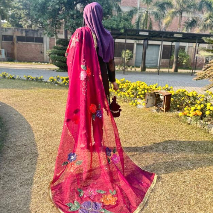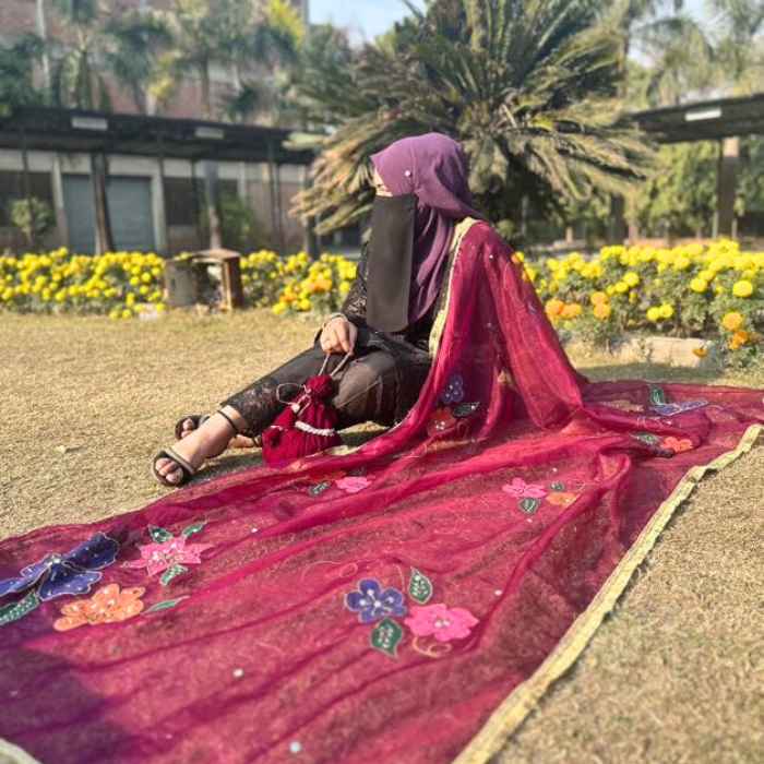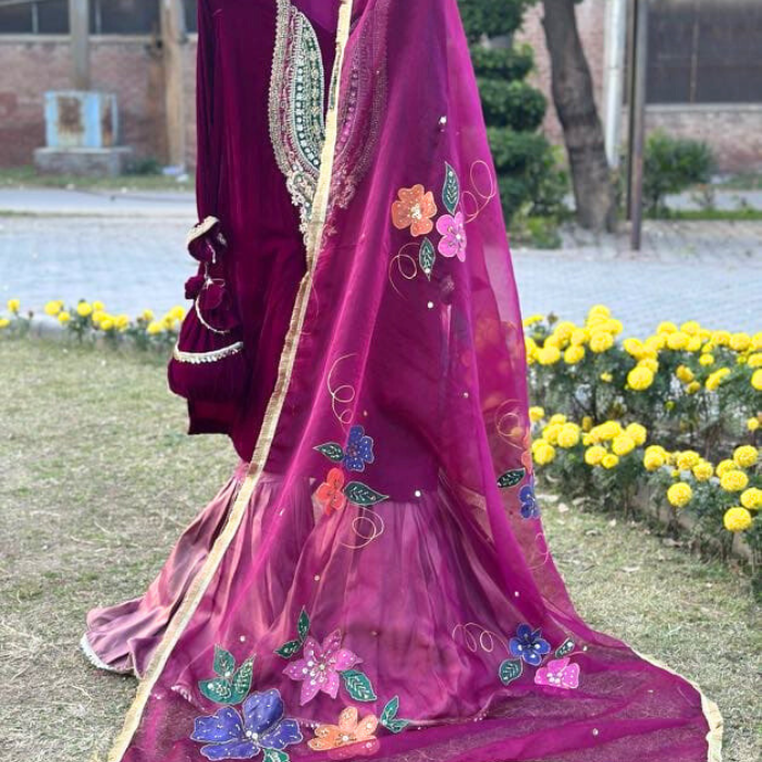 Be the first to review “Hand Paint Organza Dupatta with Embellishment – Purple Shade”